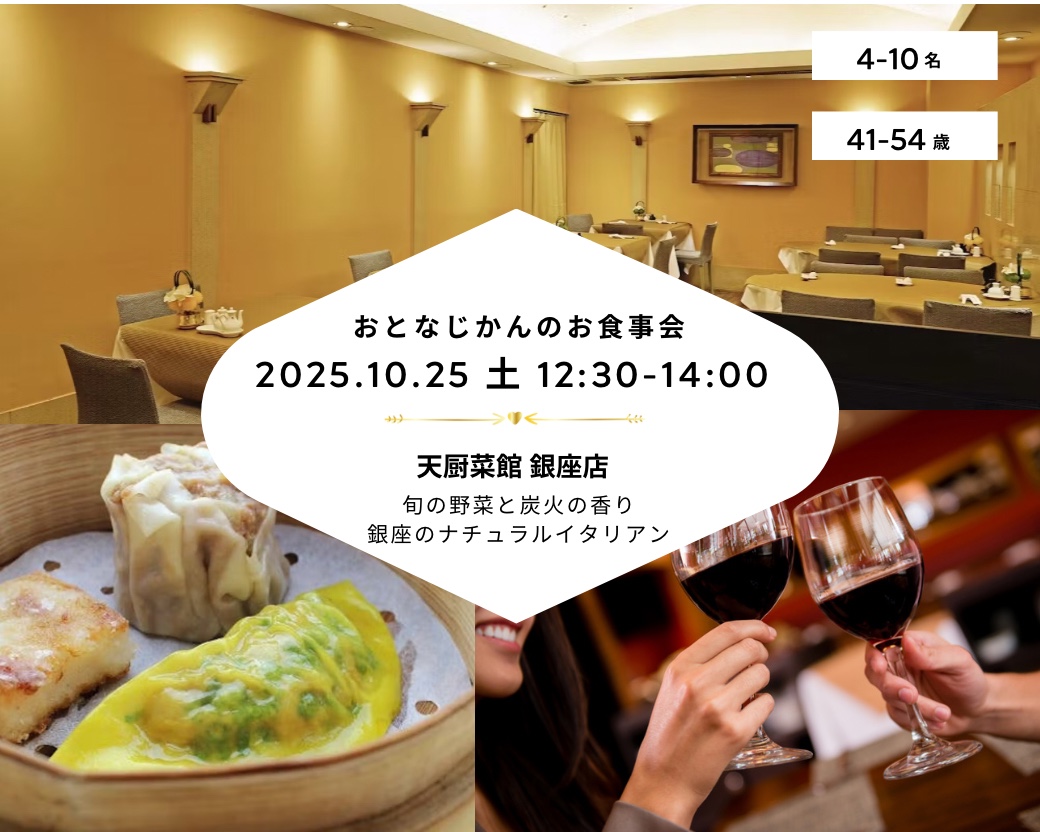 - 「独身限定」と記載のある会は独身者限定です。記載のないものは、どなたでもご参加いただけます。