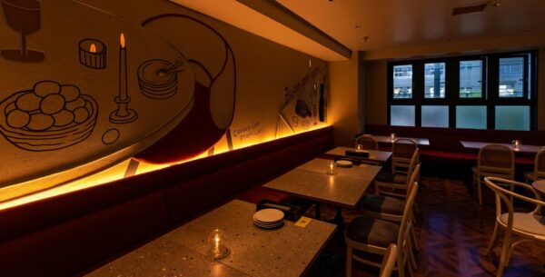 木の温もりに包まれる、卵ビストロの夜