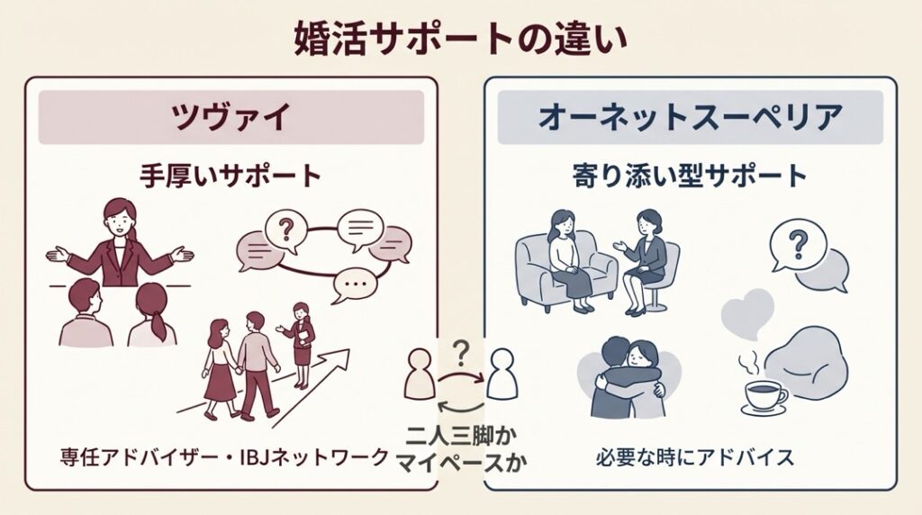 「手厚さ」で選ぶならツヴァイ、「自分のペース」で選ぶならスーペリア