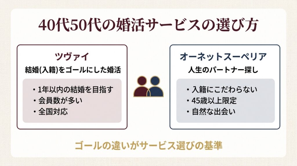 【結論】ツヴァイとオーネットスーペリア、40代50代が選ぶ判断基準はこれ