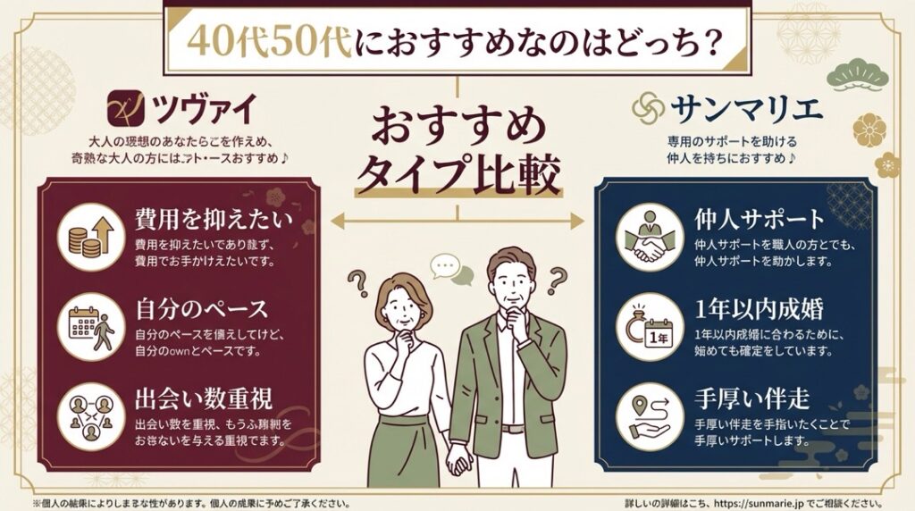 【結論】ツヴァイとサンマリエ、40代50代にはどちらがおすすめ?