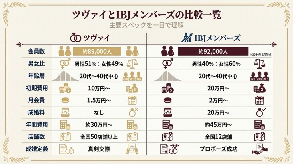 ツヴァイとIBJメンバーズの比較一覧表