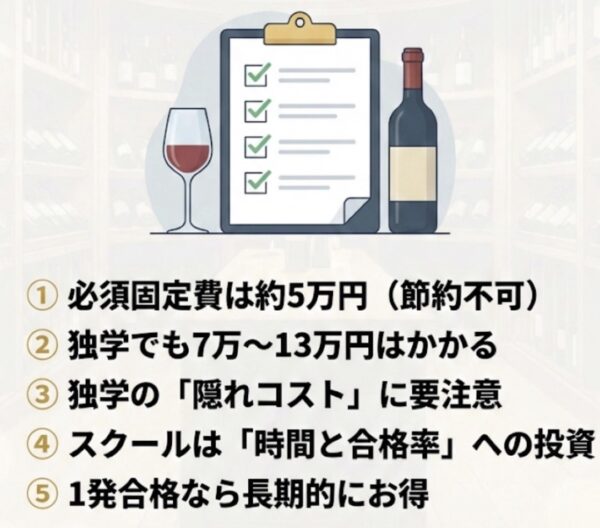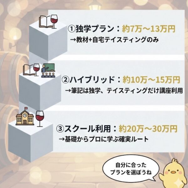 「安く済ませるつもりが、ワインを買いすぎて結局スクール代と同じくらいになった」というのは、独学あるあるなのです。