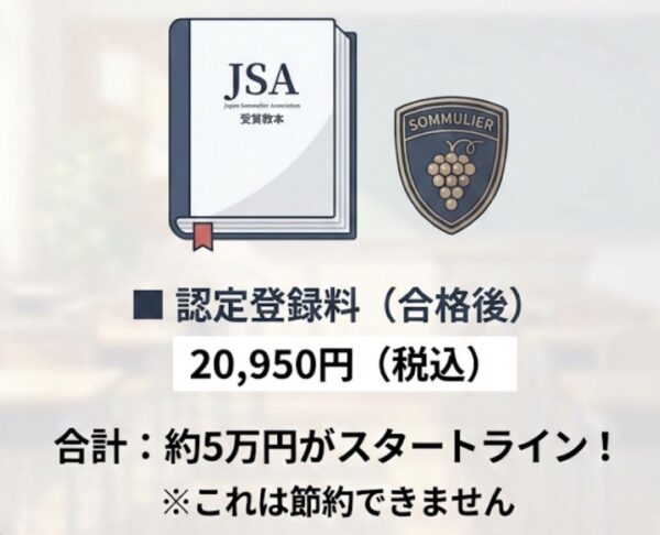 どのプランを選んでも、日本ソムリエ協会(J.S.A.)に支払う以下の費用は固定で発生します。こればかりは節約できません。