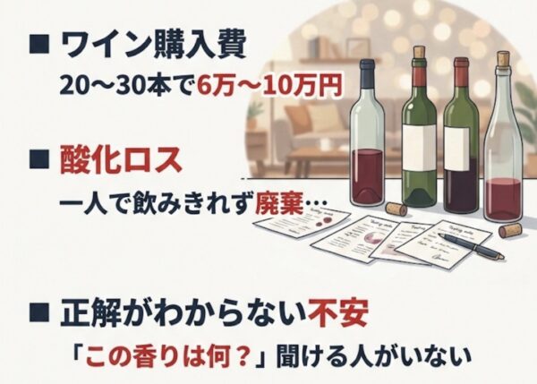 - 正解がわからない不安: 「この香りはカシス?それともブラックベリー?」と迷ったとき、独学では正解を教えてくれる人がいません。この精神的なコストも無視できません。