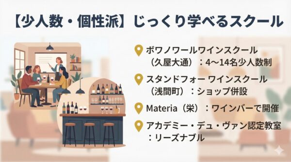 - おすすめ: アットホームな雰囲気でじっくり学びたい人、チーズも一緒に学びたい人。